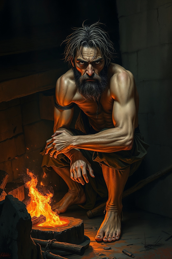 Graewol serves as a grim warning to all who would venture north into the deeper reaches of the Simmaron. Whatever darkness exists there is powerful enough to shatter even the strongest mind. And in the quiet moments when he sits rocking by the forge, muttering his secrets to himself, some wonder if perhaps his madness is a mercy—a mind's final defense against truths too terrible to bear.