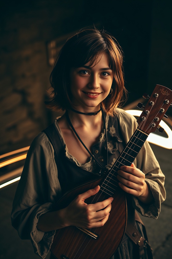 When Holly was in her early teens, she caught the attention of Brayton, a traveling bard master who was performing in Scilya. Recognizing her potential, he took her on as his apprentice. Under Brayton's tutelage, Holly spent several years traveling well-patrolled roads throughout the kingdom, learning the arts of music, storytelling, and the formal duties of a herald. Brayton gifted her a mandolin that became her most treasured possession.