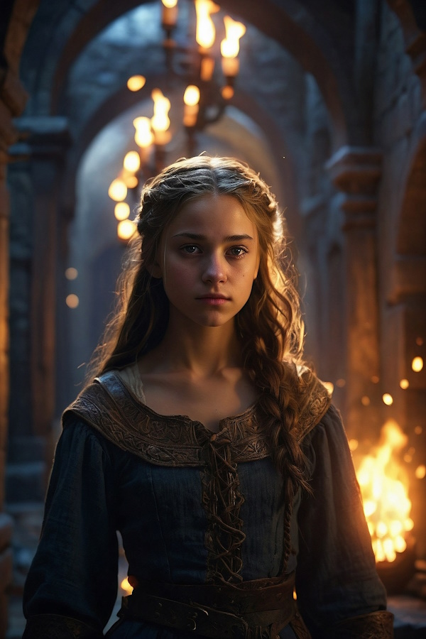 Rachel is a fifteen-year-old girl who works in the bustling kitchens of Norwynne Keep. Born to a family of modest means, Rachel’s parents were servants within the keep—her mother was a laundress and her father a groundskeeper. From a young age, Rachel learned the value of hard work and the importance of maintaining the intricate routines that keep the castle running smoothly.